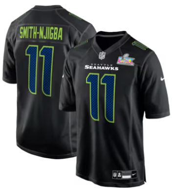 Home>NFL>2025 2026 Super Bowl LX>Seattle Seahawks>Jaxon Smith-Njigba Seattle Seahawks Nike Super Bowl LX Patch Carbon Fashion Game Jersey Black
