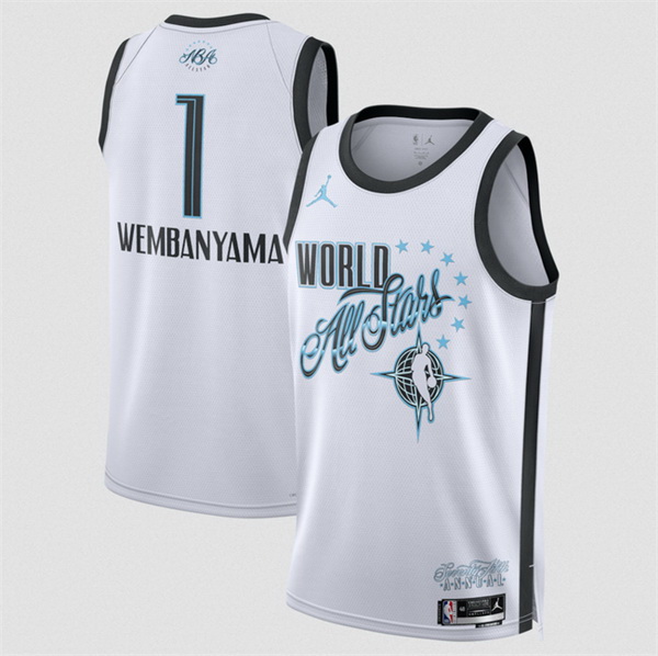 - Men 2026 All Star 1 Victor Wembanyama White Stitched Basketball Jersey