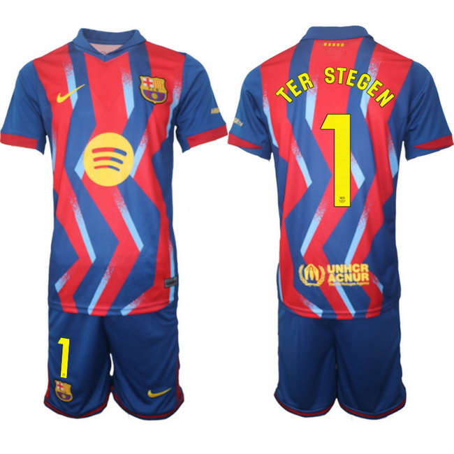- Men Barcelona Custom Blue Red 2024 25 Home Soccer Jersey Suit