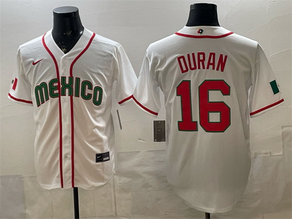- Men Mexico Baseball #2 Duran White 2026 World Baseball Classic Home Stadium Stitched Jersey