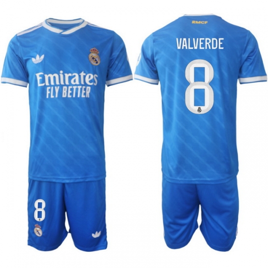 - Men Real Madrid 2026 Soccer Jerseys White Long #8 VALVERDE