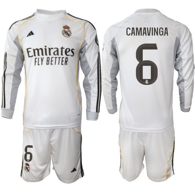 - Men Real Madrid 2026 Soccer Jerseys White Long #6 CAMAVINGA