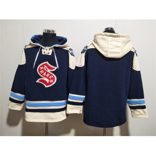 - Men Seattle Kraken Blank Deep Sea Blue Lace Up Pullover Hoodie