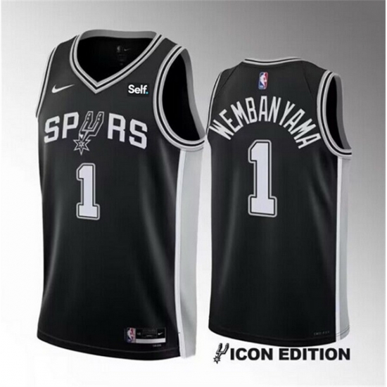 - Youth San Antonio Spurs 1 Victor Wembanyama Black Icon Edition Stitched Jersey