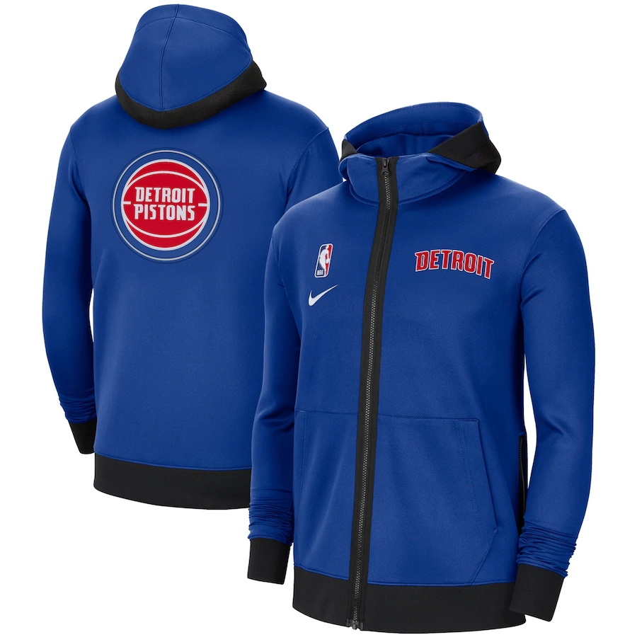 - Men Detroit Pistons Nike 75th Anniversary Performance Showtime Full Zip Hoodie Jacket Blue