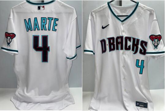 - Men's Arizona Diamondbacks #4 White Teal Gold 2021 City Connect Replica Player Jersey