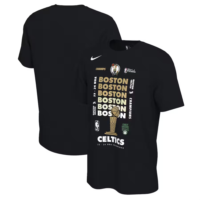 - Men Boston Celtics Black 18 Time 2024 Finals Champions Banner Franklin T Shirt