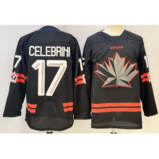 - Men Canada Hockey 17 Macklin Celebrini Black Stitched Jersey