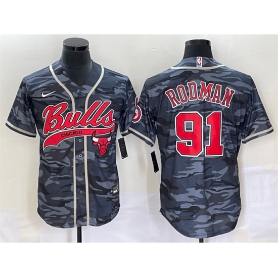 - Men Chicago Bulls Gray Camo Team Big Logo Cool Base Stitched Baseball Jersey
