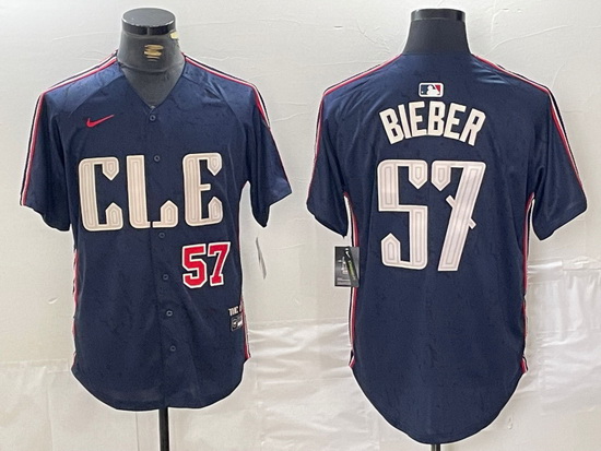- Men Cleveland Guardians 57 Shane Bieber Navy 2025 Alternate Limited Stitched Baseball Jersey