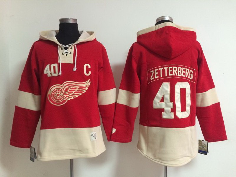 - Men Detroit Red Wings 40 Henrik Zetterberg Red Sawyer Hooded Sweatshirt Stitched NHL Jersey