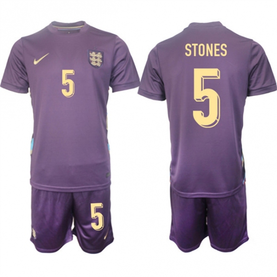- Men England 5 John Stones 2024 25 Purple Away Soccer Jersey Suit