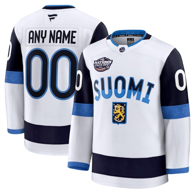 - Men Finland Active Player Custom White 2025 4 Nations Face Off Premium Stitched Jersey