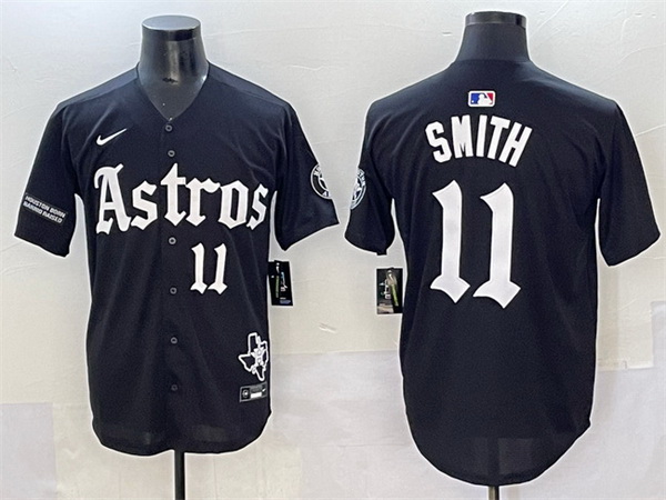 - Men Houston Astros Black Team Big Logo With Patch Cool Base Stitched Baseball Jersey