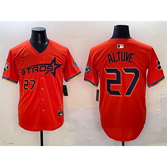 - Men Houston Astros 27 Jose Altuve Split White Orange Two Tone Jersey