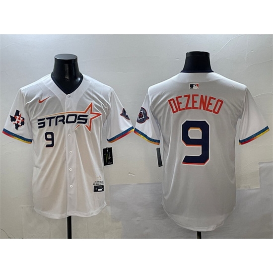 - Men Houston Astros White Team Big Logo With Patch Cool Base Stitched Baseball Jersey
