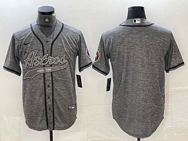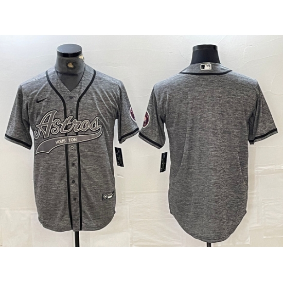 - Men Houston Astros Grey Team Big Logo With Patch Cool Base Stitched Baseball Jersey