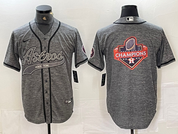 - Men Houston Astros Grey Team Big Logo With Patch Cool Base Stitched Baseball Jersey 3