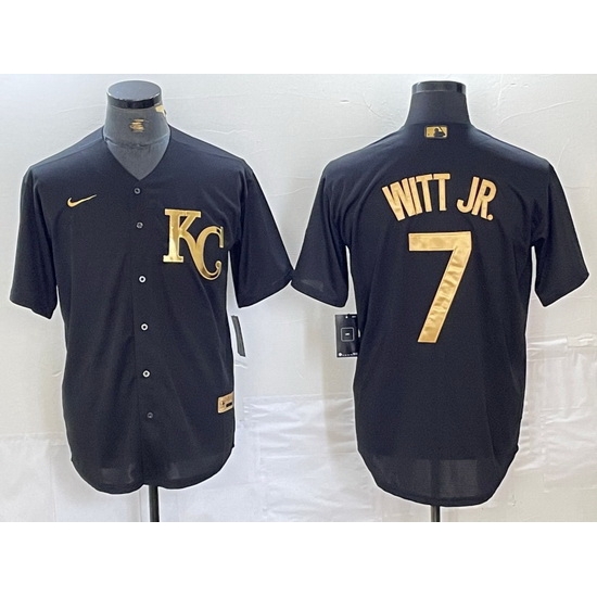- Men Kansas City Royals 7 Bobby Witt Jr Black Cool Base Stitched Jersey 4