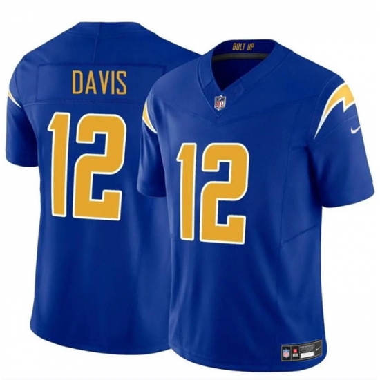 - Men Los Angeles Chargers 12 Derius Davis White 2024 Vapor Limited Stitched Football Jersey