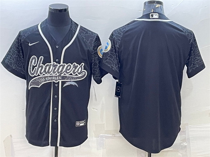 - Men Los Angeles Chargers Blank Grey With Patch Cool Base Stitched Baseball Jersey