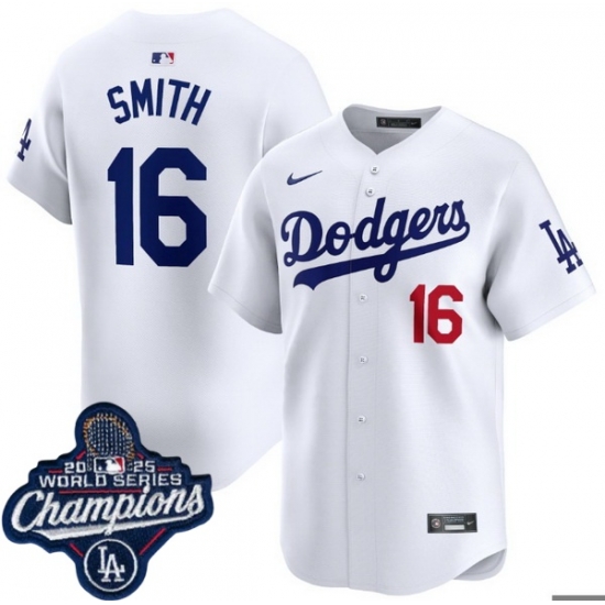 Men Los Angeles Dodgers 16 Will Smith Cool Base 2025 World Champions Stitched Baseball Jersey White