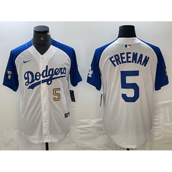 - Men Los Angeles Dodgers Team Big Logo White Blue Split Cool Base Stitched Baseball Jersey 8
