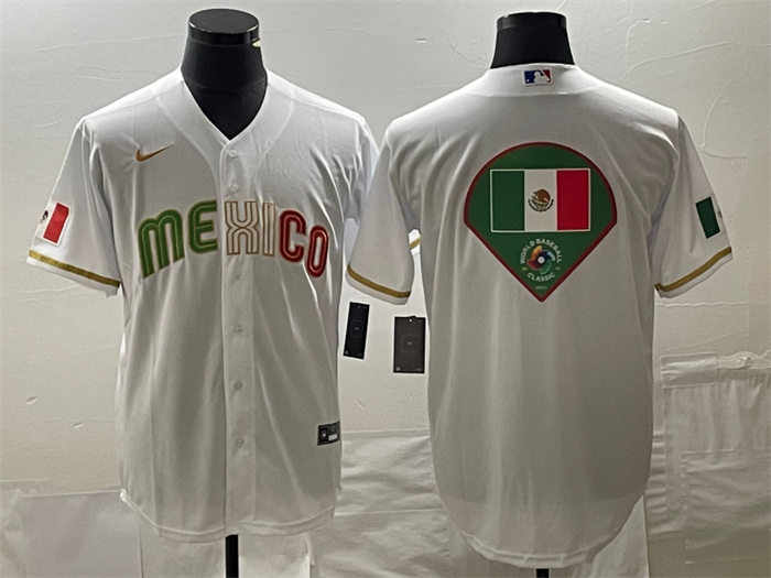 - Men Mexico Baseball 2023 White World Baseball Classic Team Big Logo Stitched Jersey