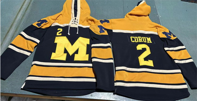 - Men Michigan Wolverines 2 Blake Corum Black Yellow Ageless Must Have Lace Up Pullover Hoodie