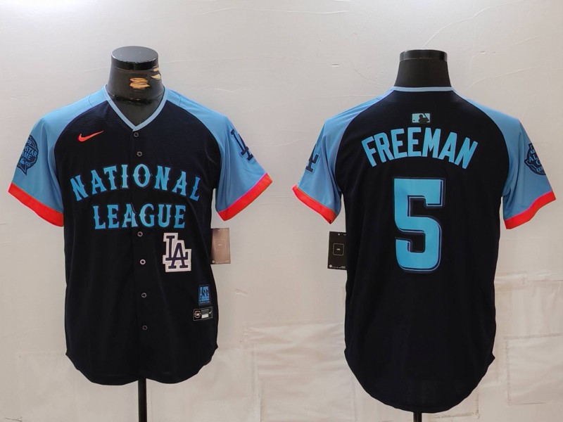 - Men National League 5 Freddie Freeman Navy 2024 All Star Limited Stitched Baseball Jersey 5