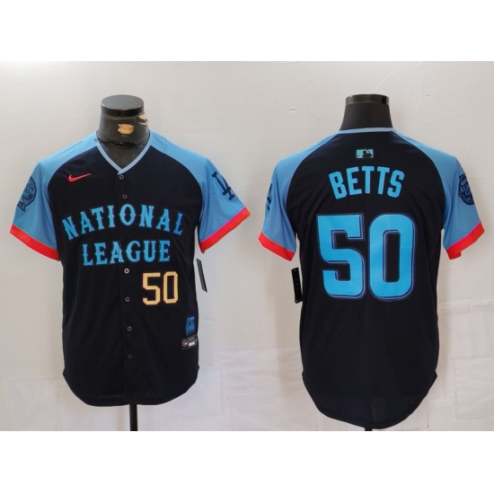 - Men National League 50 Mookie Betts Navy 2024 All Star Limited Stitched Baseball Jersey 5