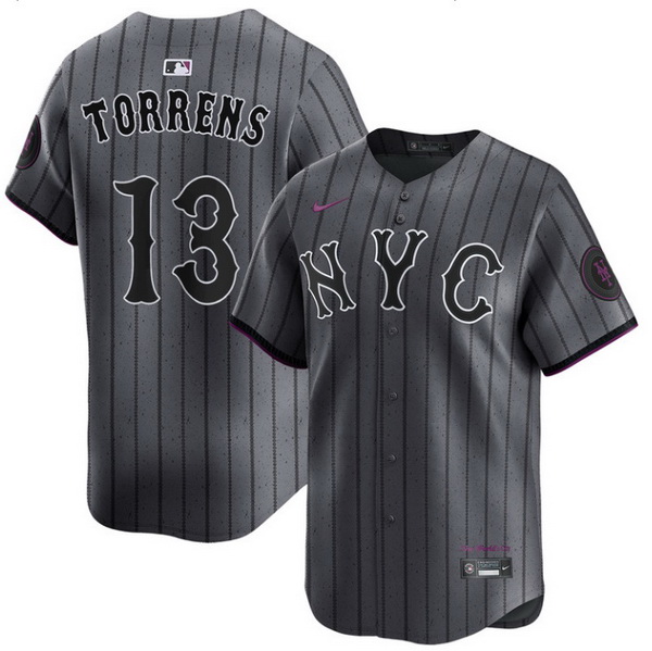 - Men New York Mets Team Big Logo Grey 2025 Limited Stitched Baseball Jersey 1