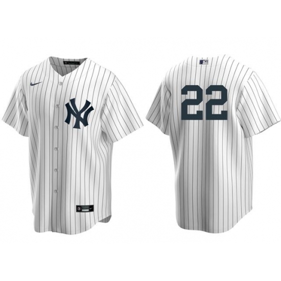 - Men New York Yankees 22 Juan Soto White Pinstripe Fashion Cool Base Jersey 1