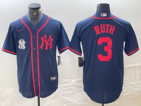 - Men New York Yankees Navy Team Big Logo Cool Base Stitched Baseball Jersey 009