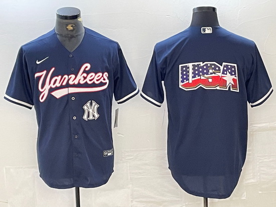 - Men New York Yankees Navy Team Big Logo Cool Base Stitched Baseball Jersey 001