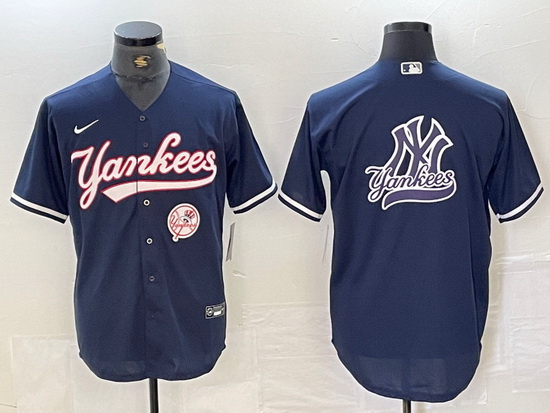 - Men New York Yankees Navy Team Big Logo Cool Base Stitched Baseball Jersey 8