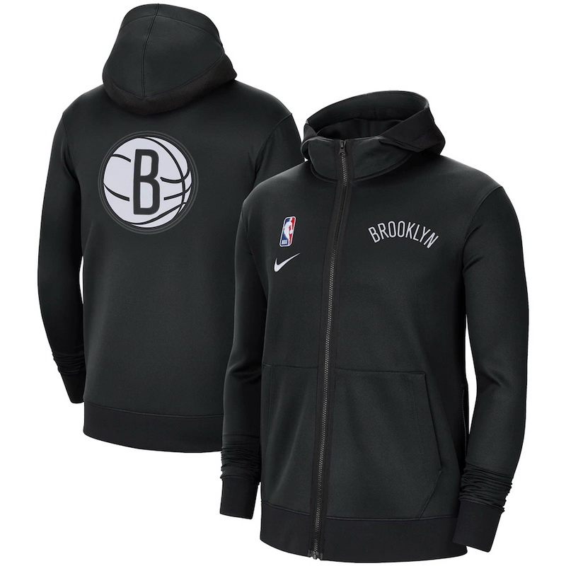 - Men Nike Brooklyn Nets Black Authentic Showtime Therma Flex Performance Full Zip Hoodie