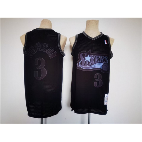 - Men Philadelphia 76ers Team Big Logo Black Cool Base Stitched Baseball Jersey