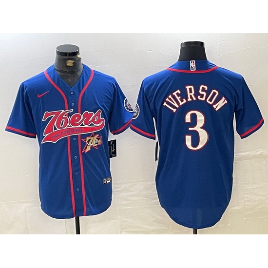 - Men Philadelphia 76ers Team Big Logo Royal Cool Base Stitched Baseball Jerseys