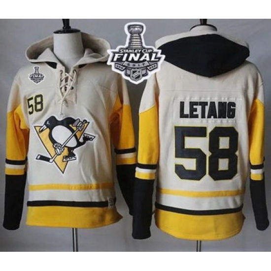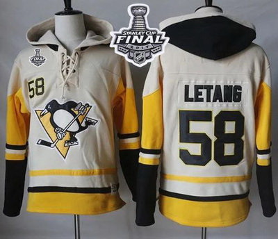 - Men Pittsburgh Penguins 58 Kris Letang Cream Sawyer Hooded Sweatshirt Stitched NHL Jersey