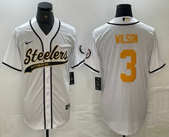 - Men Pittsburgh Steelers White Pink Split Team Big Logo Cool Base Stitched Baseball Jersey