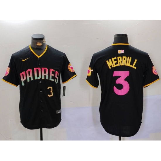 - Men San Diego Padres 3 Jackson Merrill Black Cool Base Stitched Baseball Jersey 8