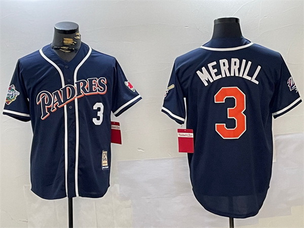 - Men San Diego Padres 3 Jackson Merrill Black Cool Base Stitched Baseball Jersey 8