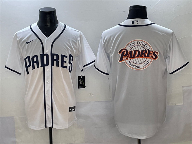 - Men San Diego Padres Team Big Logo White Cool Base Stitched Baseball Jersey 002