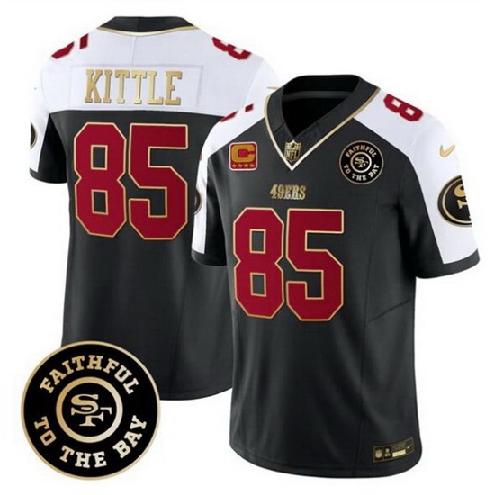 - San Francisco 49ers 85 George Kittle Men Black Nike Golden Sequin Vapor Limited NFL Jersey