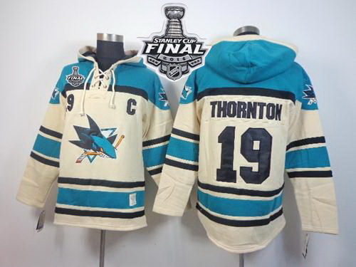 - Men San Jose Sharks 19 Joe Thornton Black Sawyer Hooded Sweatshirt Stitched NHL Jersey