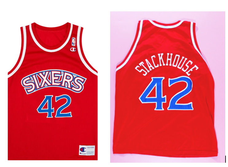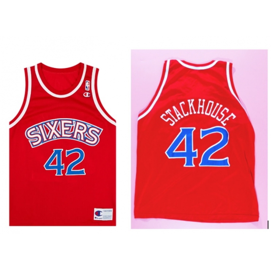 - Men Sixers Stackhouse #42 Red Stitched NBA Jersey