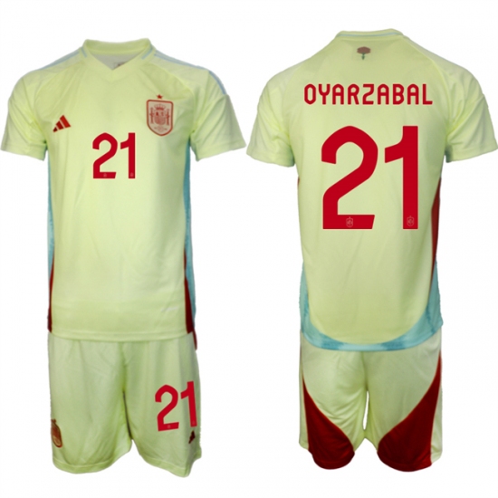 - Men Spain Team 10 Olmo 2024 25 Yellow Away Soccer Jersey Suit