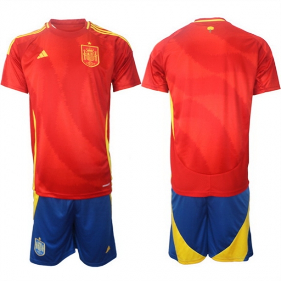 - Men Spain Team 8 Xavi 2024 25 Red Home Soccer Jersey Suit