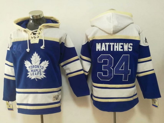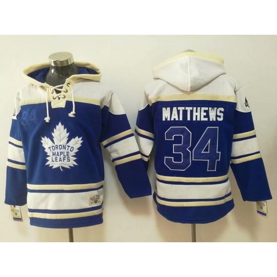 - Men Toronto Maple Leafs 34 Auston Matthews Blue Sawyer Hooded Sweatshirt Stitched NHL Jersey